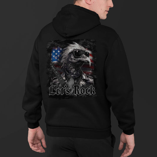 Rocker Eagle with USA Flag Let's Rock Design Black Hoodie