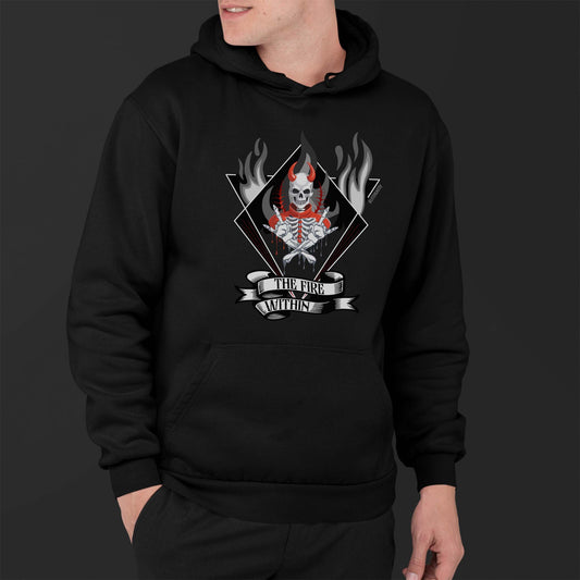 Rocker Skeleton The Fire Within Metal Rock Black Hoodie