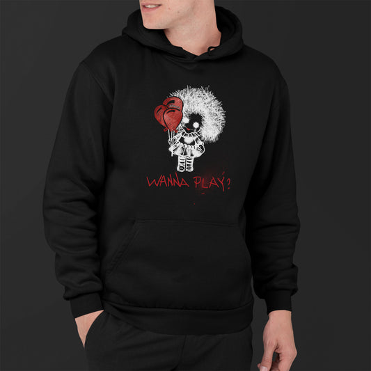 Spooky Girl Wanna Play Horror Design Black Hoodie