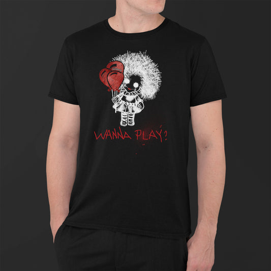Spooky Girl Wanna Play Horror Design Unisex Black T-shirt